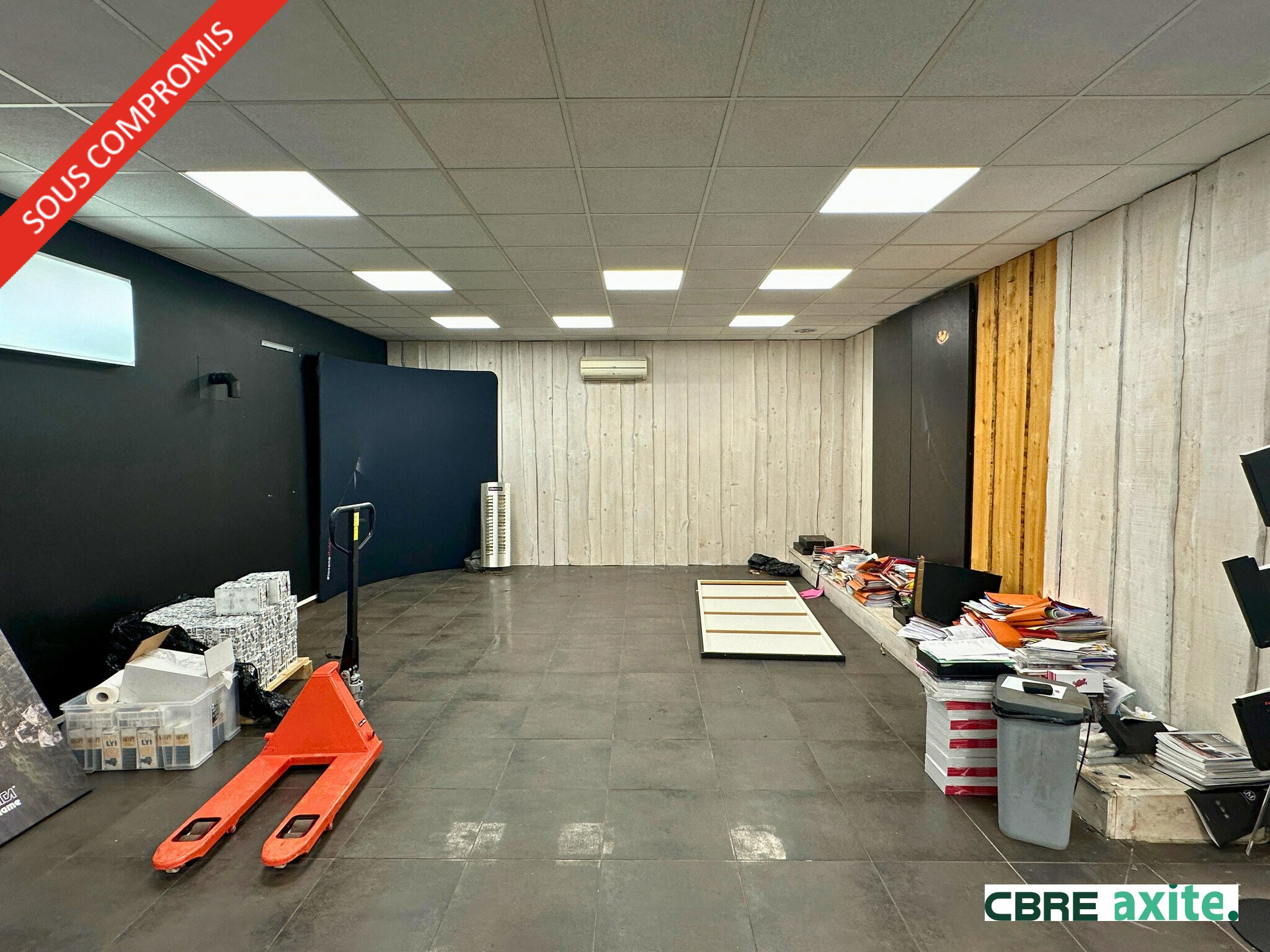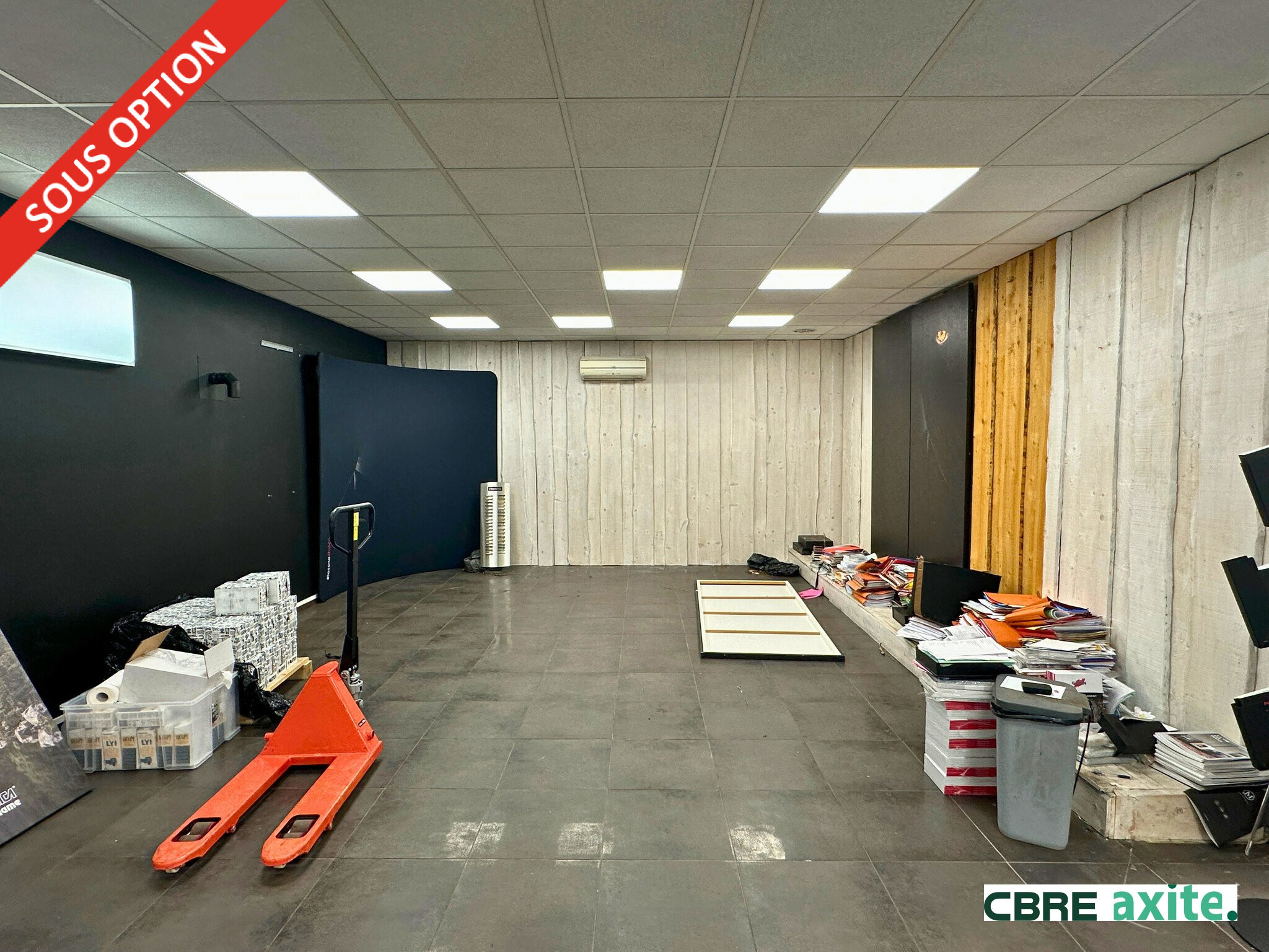 - Sol carrelé, faux plafond avec dalles LED