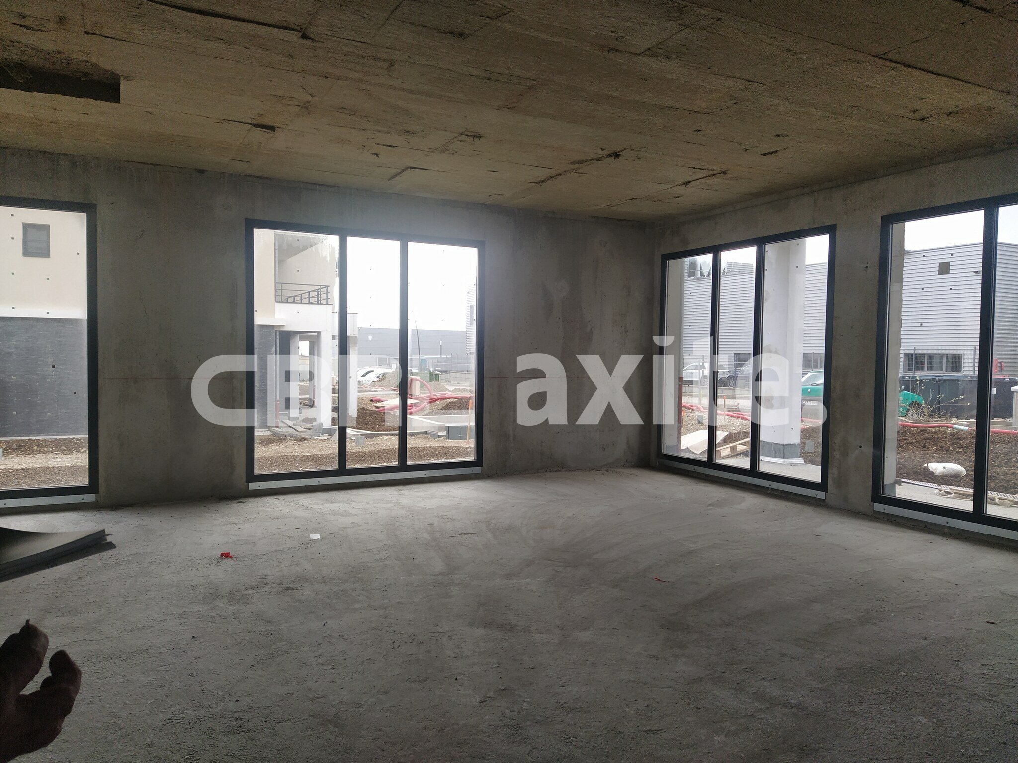 Local livré en état brut de béton, fluides en attentes et hors d'air (menuiseries extérieures installées). Ce local dispose d'un espace extérieur privatif.