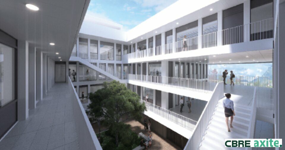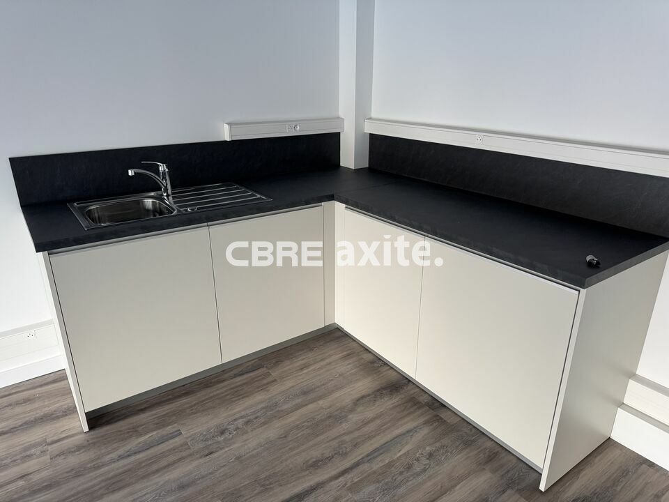 - Livraison : bureaux finis, hors cloisonnements intérieurs et courants faibles, kitchenette installée.